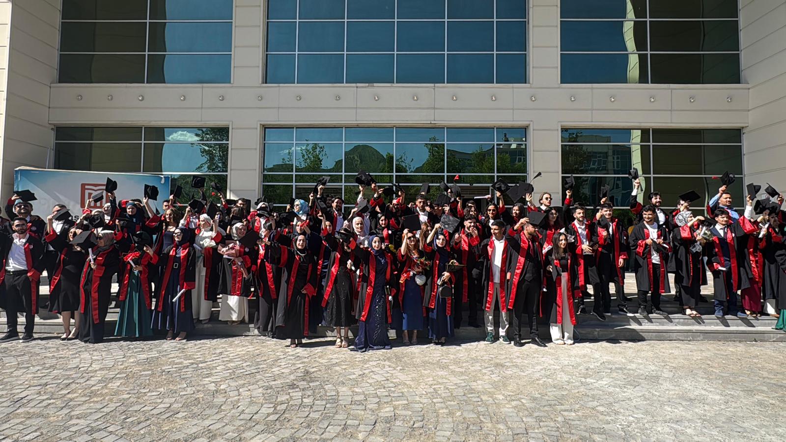 The graduation ceremonies were attended by our Vice Rectors Prof. Dr. Kenan Yıldırım and Prof. Dr. Talat Körpınar, our Rector Advisors Prof. Dr. Selva Staub and Assoc. Prof. Dr. Mehmet Özalper, our Faculty of Economics and Administrative Sciences Dean Prof. Dr. Ömer Faruk Altunç, our Faculty of Communication Dean Prof. Dr. Ahmet Kara, our Faculty of Engineering and Architecture Dean Prof. Dr. Muhammed Çınar, our Faculty of Applied Sciences Dean Prof. Dr. Yunus Levent Ekinci, our Varto Gıyasettin Bingöl Vocational School Director Assoc. Prof. Dr. Fuat Yetişsin, our Technical Sciences Vocational School Director Dr. Instr. Member Fatih Şevgin, our Secretary General Harun Demir, academic and administrative staff and many parents attended.