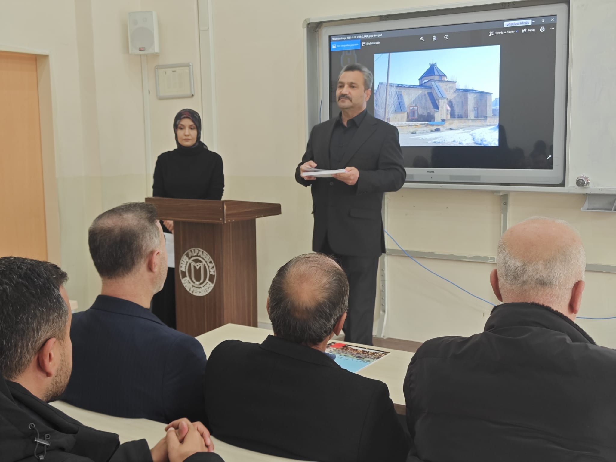 At an event held at our university's Technical Sciences Vocational School (TBMYO), educator, author, researcher, and painter Turhan Sur gave a comprehensive presentation on Muş's historical structure, cultural heritage, and its significance from past to present.