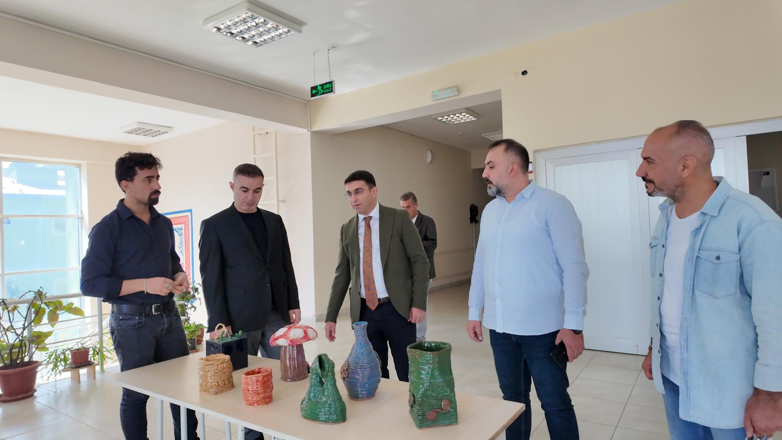 Mehmet Arif Taşdemir’e El Sanatları bölümü atölyeleri gezdirilerek fikir alış verişinde bulunuldu. El Sanatları Bölümü birinci sınıf öğrencileriyle de konuşan Mehmet Arif Bey öğrencilere Gençlik ofisi hakkında bilgilendirmede bulunarak kendilerini iyi yetiştirmeleri halinde işlerinin hazır olduğu söyleyerek bu bölümden mezun olanların her zaman istihdam etmeye hazır olduklarını söyledi.
